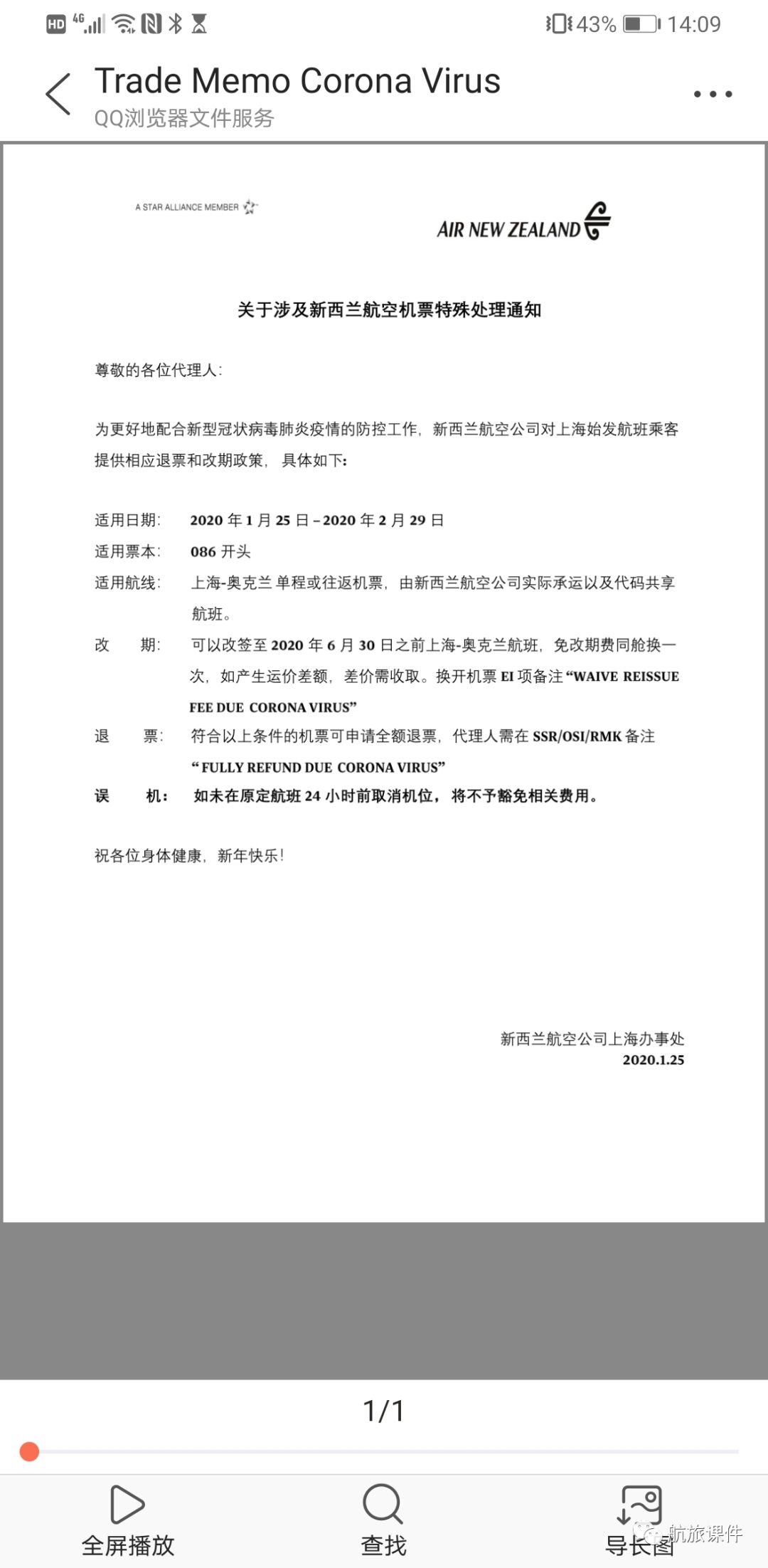 为更好地配合新型冠状病毒肺炎疫情的防控工作,新西兰航空公司对中国大陆始发航班乘客提供相应退票和改期政策, 具体如下: